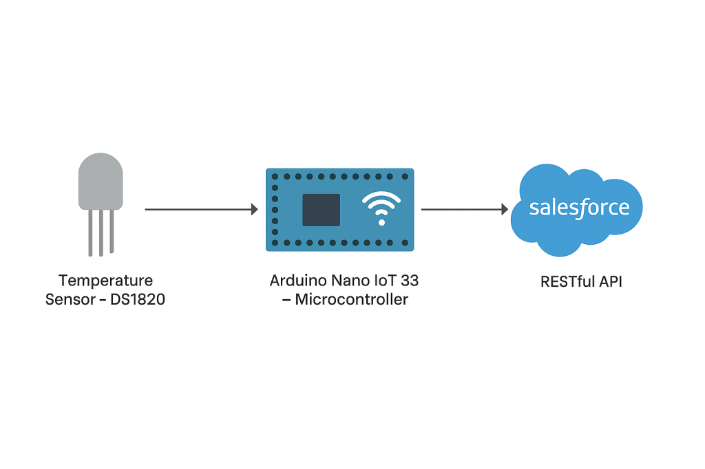 Software: Arduino IDE, Libraries for DS18B20, Salesforce – with Admin access or developer Sandbox.